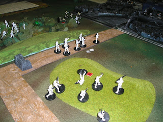 The defenders get a defensive bonus, fire combat rolls at a -2 against the redoubt, in melee the defenders get a "favorable ground" modifier. It seemed a logical choice to place the infantry as the Confederates would be out numbered. If they could weather the Union storm there would be hope.